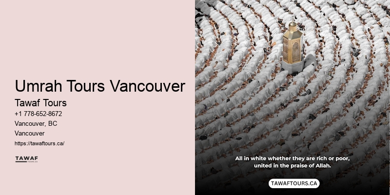 To enhance your Umrah journey from Vancouver, Tawaf Tours offers personalized guided tours, ensuring you don't miss out on any spiritual highlights. This educational component ensures you're not just going through the motions; you're deeply connecting with every step of your sacred journey. Read more about Tawaf Tours here. Umrah services Vancouver They also consider special needs, such as dietary restrictions or accessibility requirements, ensuring your pilgrimage is as comfortable and fulfilling as possible.