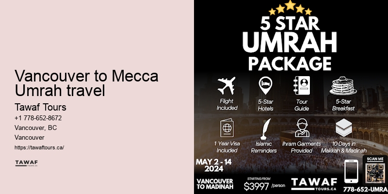 We'll also help you select travel dates that work best for you, ensuring that your journey is as smooth as possible. You're set to stay in top-tier hotels located conveniently near the Haram, ensuring you're always just a short walk away from the spiritual heart of your pilgrimage. Umrah planning Their commitment to innovation doesn't stop there. Read more about Vancouver to Mecca Umrah travel here