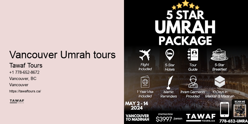 When considering your Umrah journey from Vancouver, Tawaf Tours stands out for its unparalleled service and expertise. Before you set off, double-check your travel documents. Umrah is a journey of renewal, and cleansing your heart of grudges or ill feelings is crucial. When planning your Umrah trip from Vancouver, you'll find that customizable itinerary options allow you to tailor your spiritual journey to fit your personal preferences and schedule.