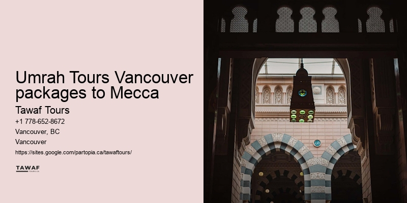 Both hotels offer dining options that serve a variety of international and local cuisines, catering to all dietary needs. Read more about Experience Spiritual Journeys with Tawaf Tours' Umrah Packages from Vancouver here. Umrah package inclusions You'll also find that social distancing measures are in place during group activities to minimize health risks. Embrace this opportunity to deepen your faith with a personalized guided tour that promises an unforgettable Umrah experience from Vancouver. This process is typically streamlined when you book your trip through an experienced travel agency like Tawaf Tours. Public displays of affection are frowned upon, and it's important to speak and act with decorum. Learn more about Umrah Tours Vancouver packages to Mecca here
