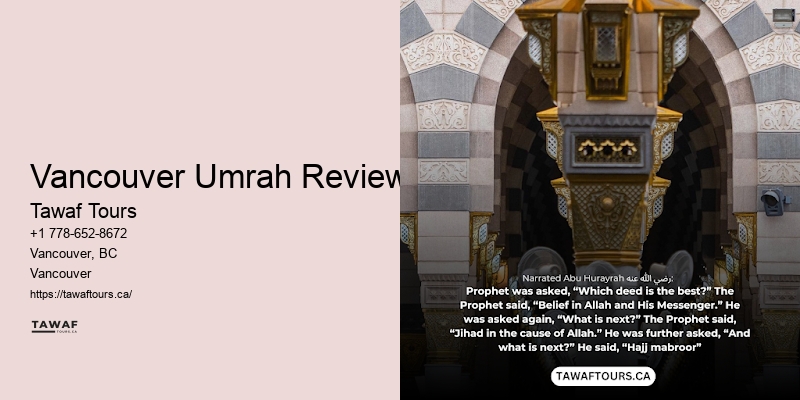 Ready to start planning? Umrah tour operator Tawaf Tours accepts major credit cards, bank transfers, and even offers installment plans for those who prefer to spread out the cost. We understand the importance of this spiritual journey, and our goal is to make your Umrah experience as fulfilling and hassle-free as possible. Learn more about Vancouver Umrah Reviews here Your adventure doesn't stop at the spiritual; it extends to exploring the vibrant traditions, mouth-watering cuisine, and historic landmarks that these cities offer. You're not just visiting historical sites; you're experiencing a personal transformation that will stay with you long after you return home.