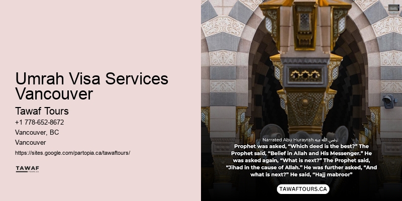 Tawaf Tours offers an all-inclusive Umrah package designed to cater to every aspect of your spiritual and physical needs, ensuring a hassle-free pilgrimage. With Tawaf Tours, your spiritual journey is in compassionate and knowledgeable hands. The warm hospitality of the locals will embrace you, offering a glimpse into their daily lives and shared meals that turn into lasting friendships. Read more about Vancouver Residents, Experience the Essence of Umrah with Tawaf Tours here. Ensure your passport is valid for at least six months from your travel date, and secure your Umrah visa through Tawaf Tours. Learn more about Umrah Visa Services Vancouver here
